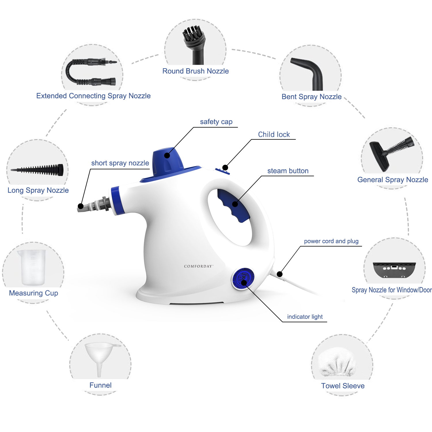 Comforday Multi Purpose Handhled Steam Cleaner Handheld Pressurized Portable Steam Cleaner With Child Lock Function And 9 Piece Accessories White And Blue Color Walmart Com Walmart Com Nozzle For Printer