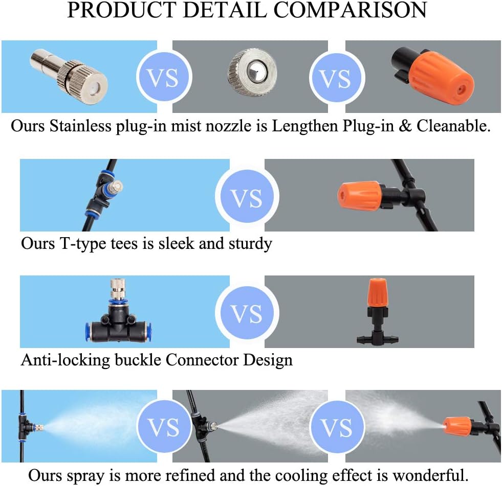 Amazon Com Misting Cooling System 32 8ft 10m Misting Line 6 Stainless Steel Mist Nozzles 6 Connector Outdoor Cool Mister For Patio Garden Umbrellas Greenhouse Fan Trampoline Waterpark Home Kitchen Nozzle In Rocket Engine