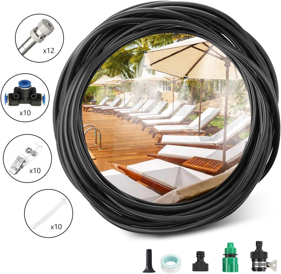 Amazon Com Pathonor Misting Cooling System 32 8ft 10m 4 7 Tubing 12 Misting Nozzle Outdoor Cooling System For Patio Garden Lawn Swimming Pool Umbrella Trampoline Garden Outdoor Nozze Di Cana Louvre