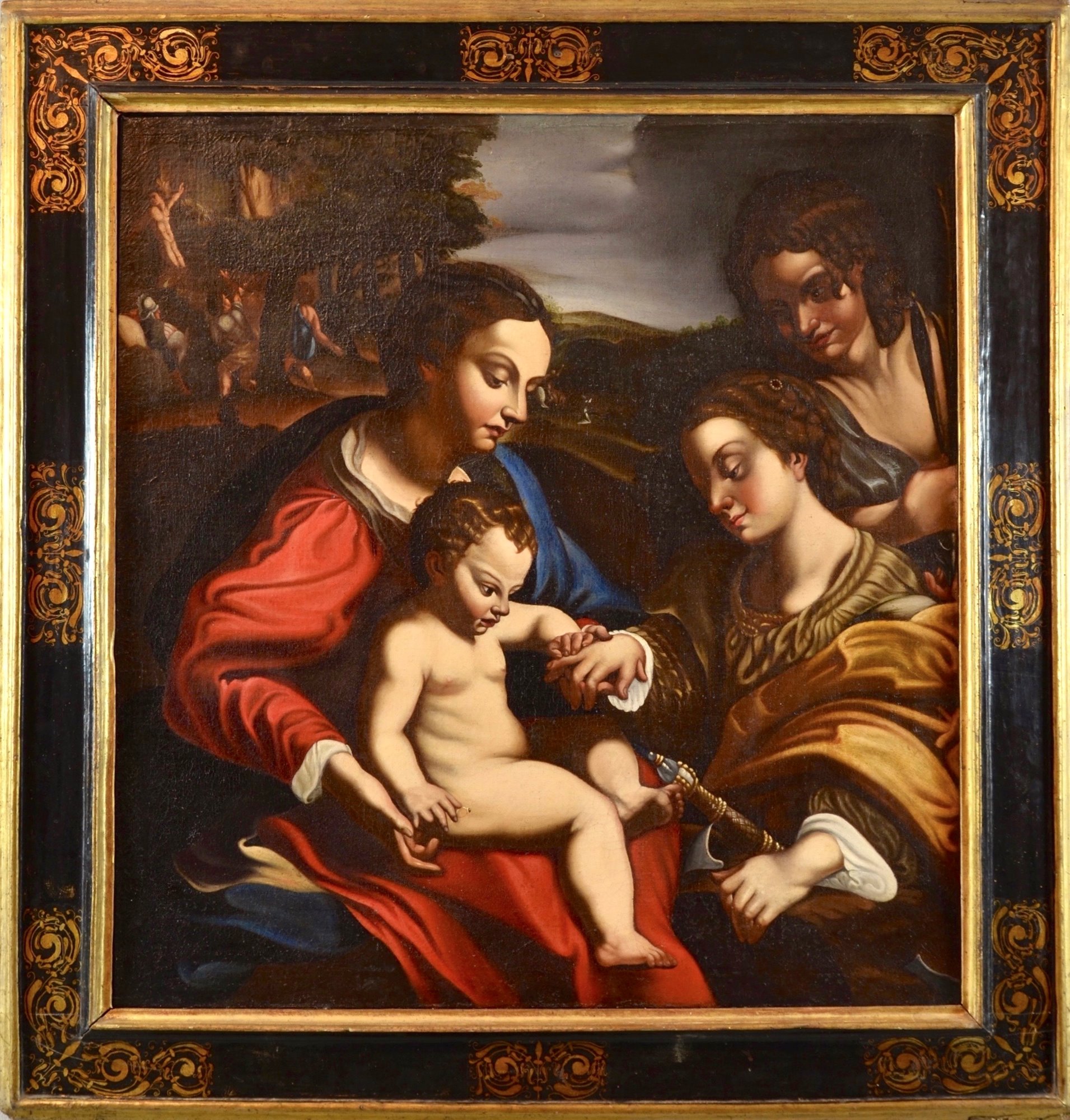 Collezione giacomo carrara. Nelle nozze mistiche di santa caterina del cosiddetto maestro del fogliame ricamato master of the embroidered foliage attivo tra il 1480 e il 1510 ci sono queste due elegantissime signorine sedute nellerba ai piedi della madonna che invece se ne sta comoda e maestosa su un bellissimo tappeto. 80 off a hand made oil painting reproduction of nozze mistiche di santa caterina one of the most famous paintings by paolo di matteis.