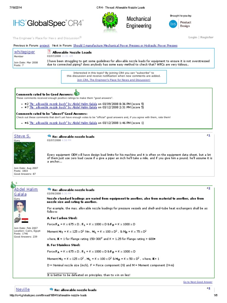 Allowable Nozzle Loads Internet Forum Pipe Fluid Conveyance Lighter Gas Refill Nozzle