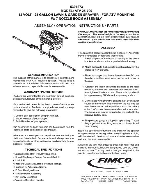 5301273 Model Atv 25 700 12 Volt 25 Fimco Industries Nozzle Design Calculation Pdf