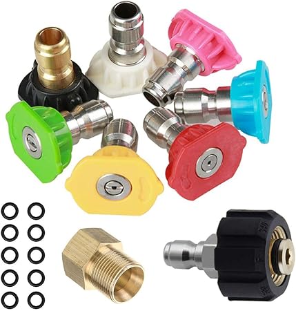 Amazon Com Pressure Washer Adapter Set Metric M22 15mm Male Thread To M22 14mm Female Fitting M22 14mm 3 8 Quick Disconnect Plug With 7 Spray Nozzle Tips Multiple Degree And 10pcs Function Nozzle In Steam Turbine