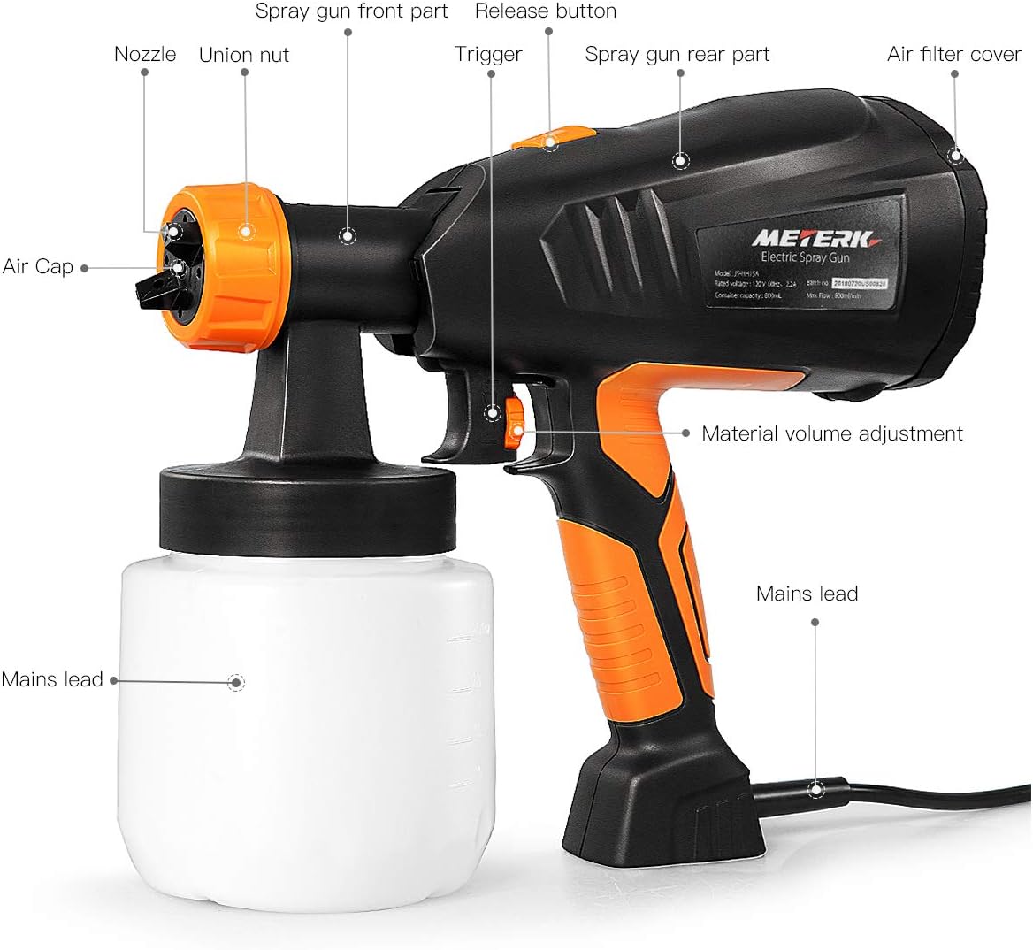 Paint Sprayer Meterk 800ml Min Hvlp Electric Paint Gun With 3 Spraying Patterns 3 Nozzle Sizes Adjustable Valve Knob Quick Refill Lid Detachable Container Replaceable Air Filter Painting Sprayer Amazon Com Airsoft Nozzle Length Chart