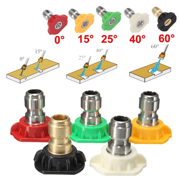 5pcs 1 4 Bsp High Pressure Washer Spray Nozzle Tips Quick Connect For Snow Suds Lance 0 Red 15 Yellow 25 Green 40 White 60 Black Walmart Com Walmart Com Nozzle Efficiency Explanation